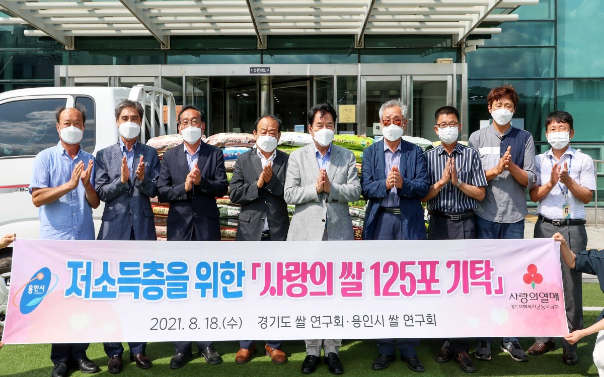 용인시는 18일 용인시쌀연구회 등 농업인들이 ‘쌀의 날’을 맞아, 어려운 이웃돕기에 써달라며 10㎏짜리 백미 125포를 기탁했다고 밝혔다.