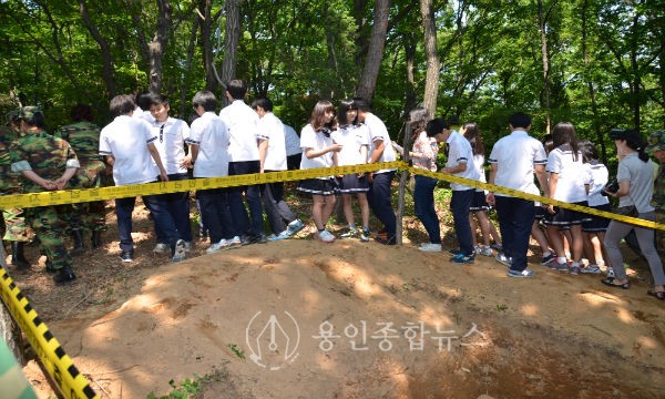 육군 제55사단(사단장 육군소장 박원수)에서는 6.25전쟁 당시 산화하신 호국영령들의 유해를 찾아 가족의 품으로 모셔 드리기위한 ‘6.25전사자 유해발굴’이 육군 제55사단에서 지난 5월2일부터 추진되어오고 있는 가운데, 22일 기흥구 서농중학교 학생들과 기흥구 여성예비군들이 백련사일대 유해 발굴 현장에서, 국방부 유해발굴 감식단이 유해발굴을 하고 있는 현장에서 생생한 안보 현장 체험을 가졌다.