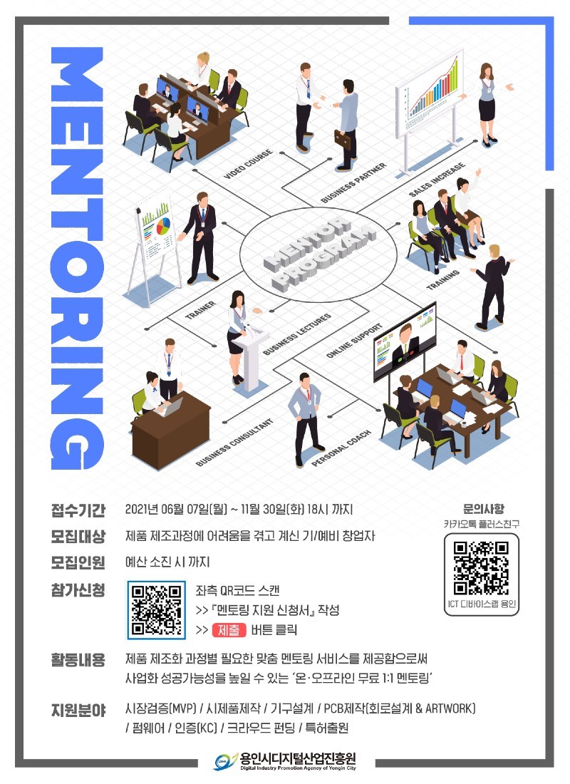용인시디지털산업진흥원, 전문기술 멘토링 무료지원