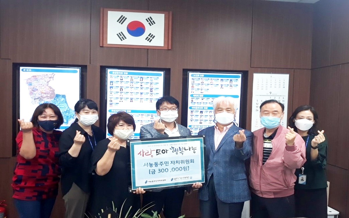 한편 서농동 주민자치위원회는 지역의 소외계층을 위한 의료비 지원, 성금 기탁 등 지역 주민들을 위한 다양한 나눔 활동을 지속적으로 실천하고 있다.