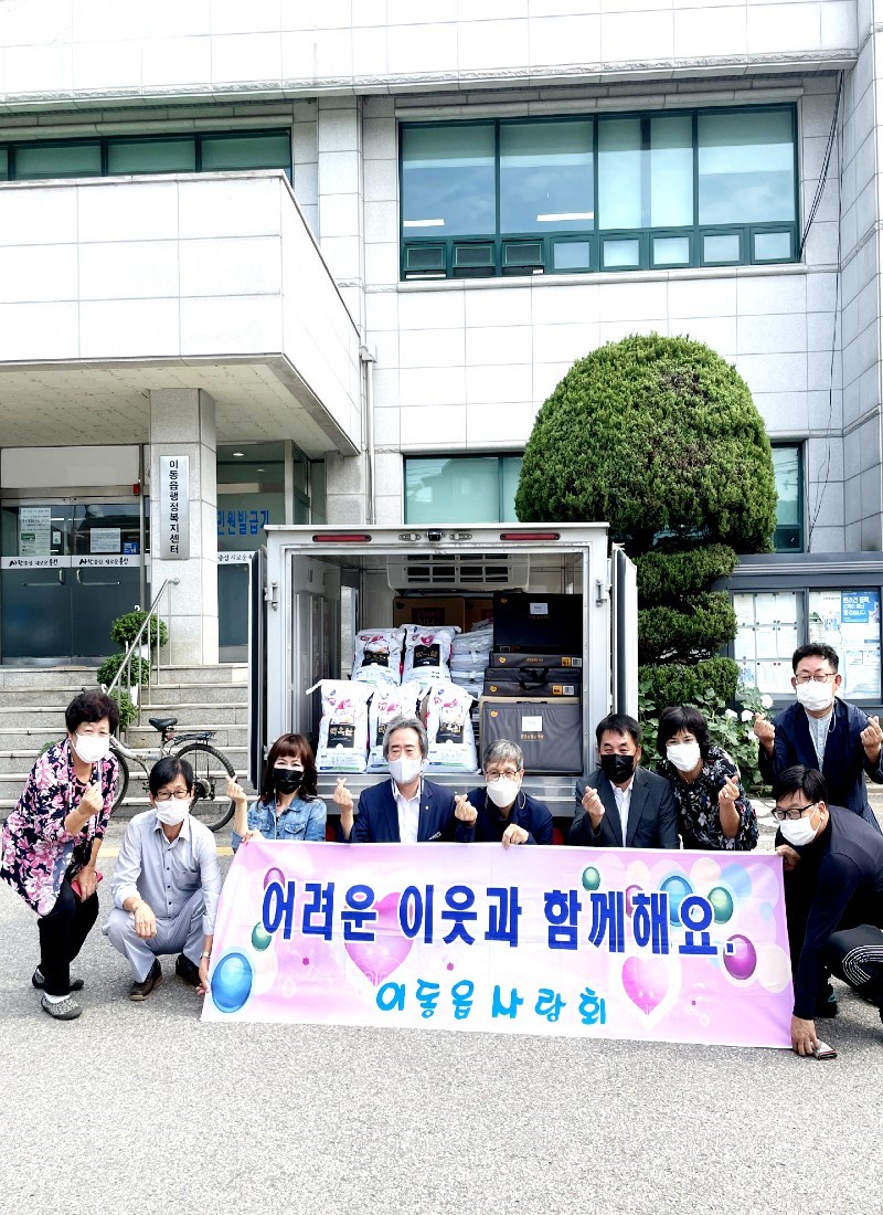 이동읍의 봉사단체 사랑회도 이날 관내 저소득 90가구에 520만원 상당의 햅쌀 10kg 90포와 추석선물세트 90개를 마련해 전달했다. 물품은 사랑회 회원들이 십시일반 모금한 성금으로 마련했다.