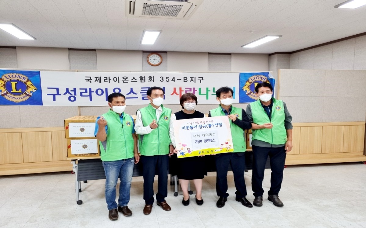 구성라이온스클럽은 이날 구성동, 보정동, 마북동 3곳 행정복지센터에 어려운 이웃들을 돕는 데 써 달라며 라면 38박스씩 총 114박스를 전달했다. 구성라이온스클럽은 매년 명절을 앞두고 이웃돕기 성품을 기탁하는 등 꾸준한 이웃사랑을 실천해 오고 있다.