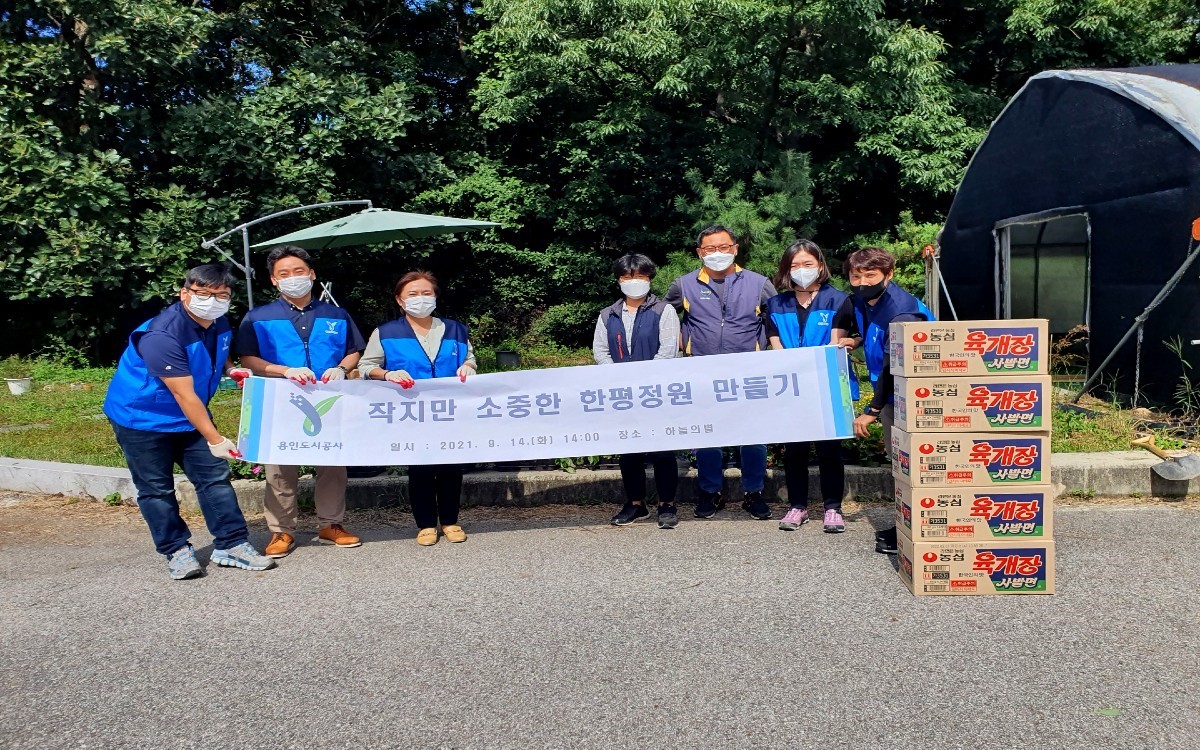 용인도시공사(사장 최찬용) 산단사업팀은 지난 14일, 용인시 처인구 원삼면에 위치한 장애인거주시설 하늘의별에서, ‘한 평 정원’ 조성 활동을 실시했다.