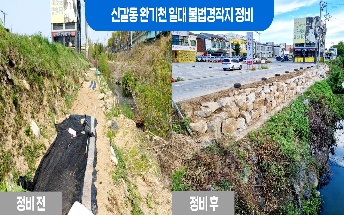 용인시 기흥구는 신갈동 388-892번지 일원 완기천일대 불법경작지 정비를 완료했다고 30일 밝혔다.