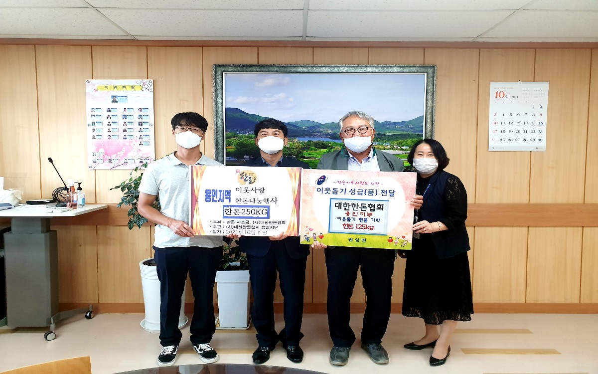 한편 (사)대한한돈협회 용인시지부는, 수년째 돼지고기 기부를 이어오며 이웃사랑을 실천하고 있다. 이들은 지난해 4월 돼지고기 600kg와 손 소독제 등을 시에 기탁한 바 있으며, 11월에는 원삼면에 돼지고기 100kg을 기탁했다.