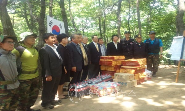 이날 보훈단체 방문단은 유해발굴단에 피자, 통닭, 장갑, 물수건 등 위문품을 전하고 호국영령을 추모하는 시간을 가졌다. 또 유해발굴단으로부터 발굴작업 현황 설명 등을 경청하고 발굴현장에서 생생한 안보체험의 기회도 가졌다.