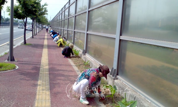 회원 26명 꽃길가꾸기 봉사 구슬땀 기흥구 보정동 통장협의회(회장,황재욱) 회원 26명은 지난 1일 불볕 더위 날씨에도 불구하고 지난 봄에 파종한 칸나 꽃길 화단 제초작업을 하는 등 ‘아름다운 보정동 가꾸기’에 동참해 이곳을 지나는 시민들로부터 많은 호응을 얻었다. 이곳을 지나던 시민 권종안(보정동 동원 로얄듀크 거주)씨는 “구청에 소속된 미화 용역원이 제초작업을 하는 줄 알았으나, 알고 보니 우리 동네 통장님들이었다.”며 “통장님들이 이렇게 솔선수범하는 모습을 보니 매우 든든하다”며 자랑스러워하기도 했다.한편 보정동 통장협의회 회원들은 매월 1회씩 주변 가로청소 및 각종 봉사활동을 실시해 주민들에게 훈훈한 감동을 주고 있다. 저작권자 © 용인종합뉴스 무단전재 및 재배포 금지 천홍석 기자 다른기사 보기