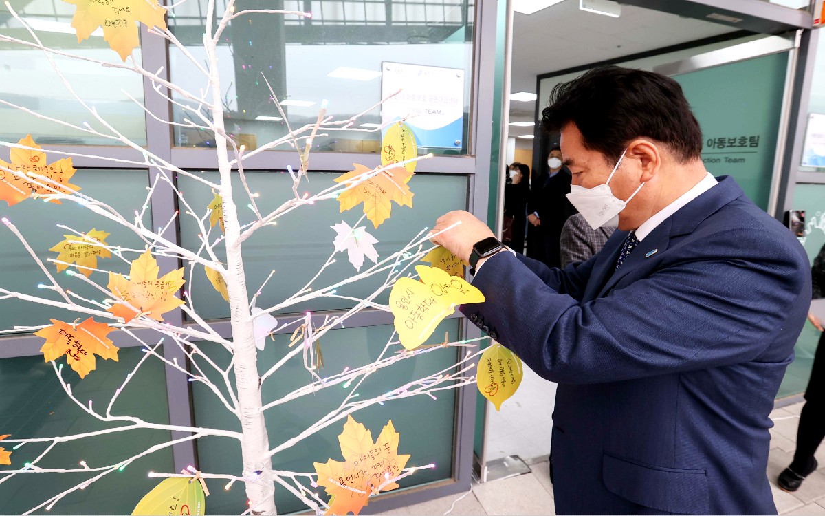 또 아동들에게 전하는 희망의 메시지를 적어 아동학대 예방 나무에 걸고, 핸드프린팅을 하며 다시 한번 아동학대 문제에 경각심을 갖고, 신속 긴밀하게 대응할 것을 다짐했다.