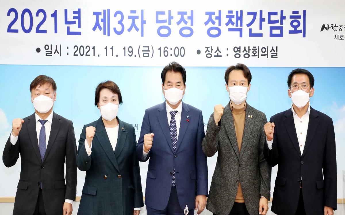 백군기 용인시장은 19일 시청 영상회의실에서, 2021년도 제3차 당정 정책간담회를 열어 시 발전을 위한 주요 현안을 논의하고, 지역 국회의원들에게 상호협력을 당부했다.