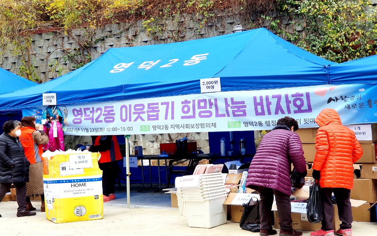 용인시 기흥구 영덕2동은 지역사회보장협의체(위원장 오현숙)가, 취약계층을 돕기 위한 ‘희망나눔바자회’를 열었다고 23일 밝혔다.