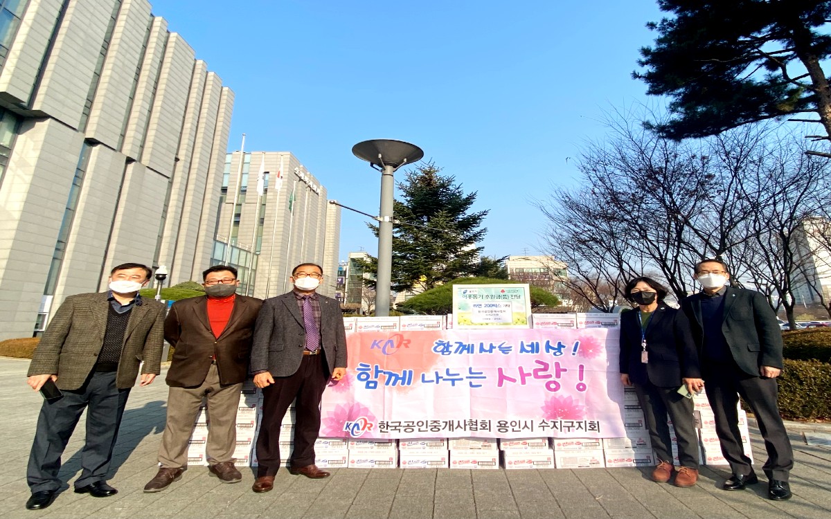 같은 날 수지구에선 한국공인중개사협회, 수지구지회가 관내 소외 이웃을 위해 써 달라며 라면 200박스를 기탁했다.
