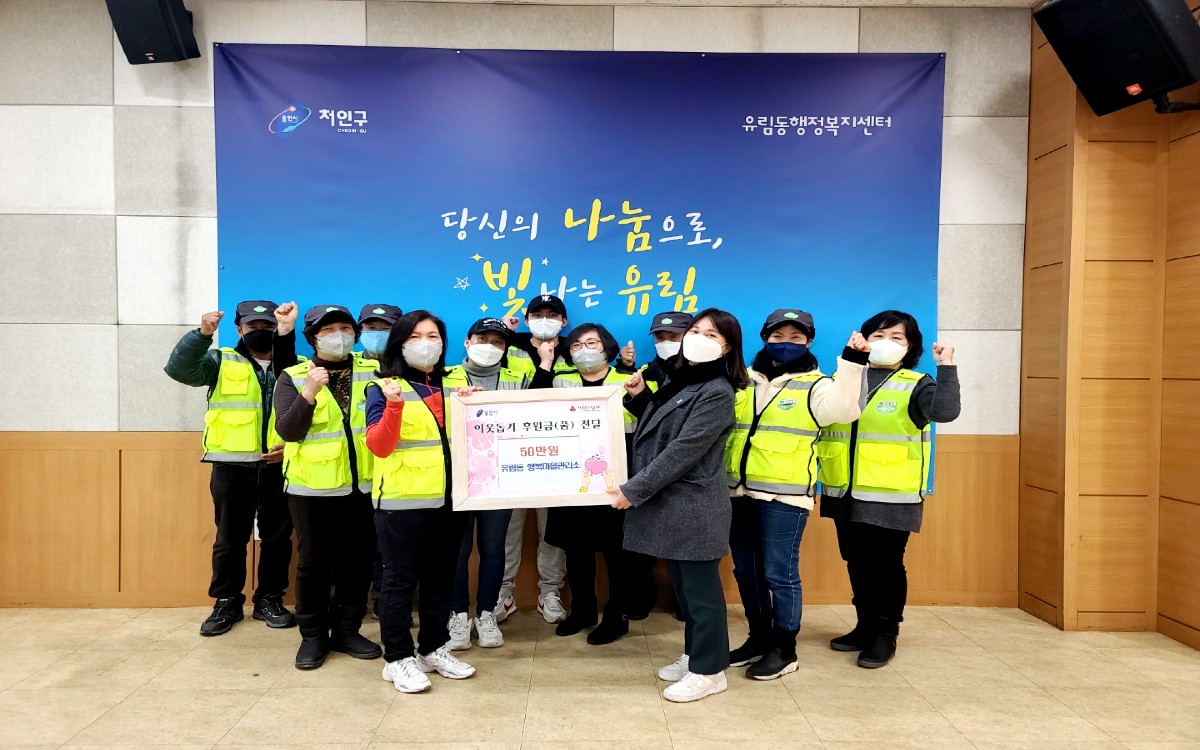 유림동에선 행복마을관리소 지킴이들이 ‘2021년 경기도행복마을관리소 사례 발표’ 우수 포상금 50만원을 이웃 돕기에 기부했다.