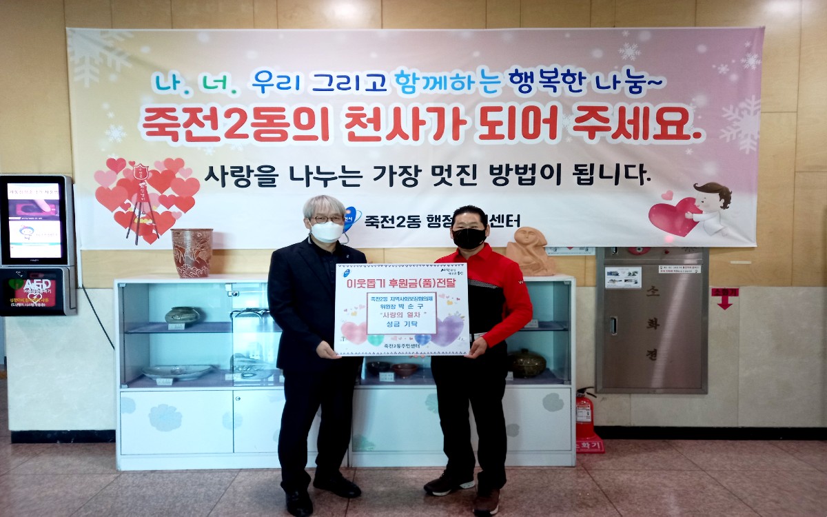이날 죽전2동 지역사회보장협의체 박순구 위원장도, 어려운 이웃을 위해 써 달라며 성금 100만원을 기탁했다.