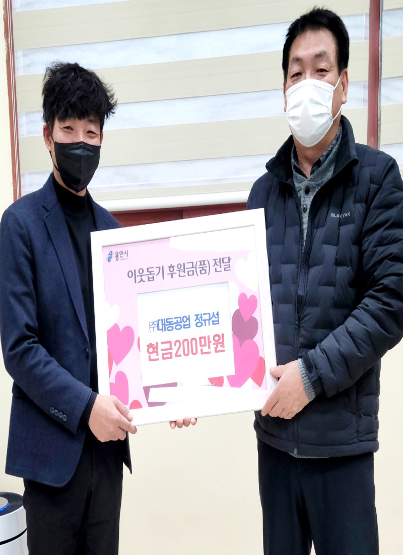 2일에는 대동공업(주) 정규섭 대표가 동부동 행정복지센터를 방문해, 성금 200만원을 기탁했다.