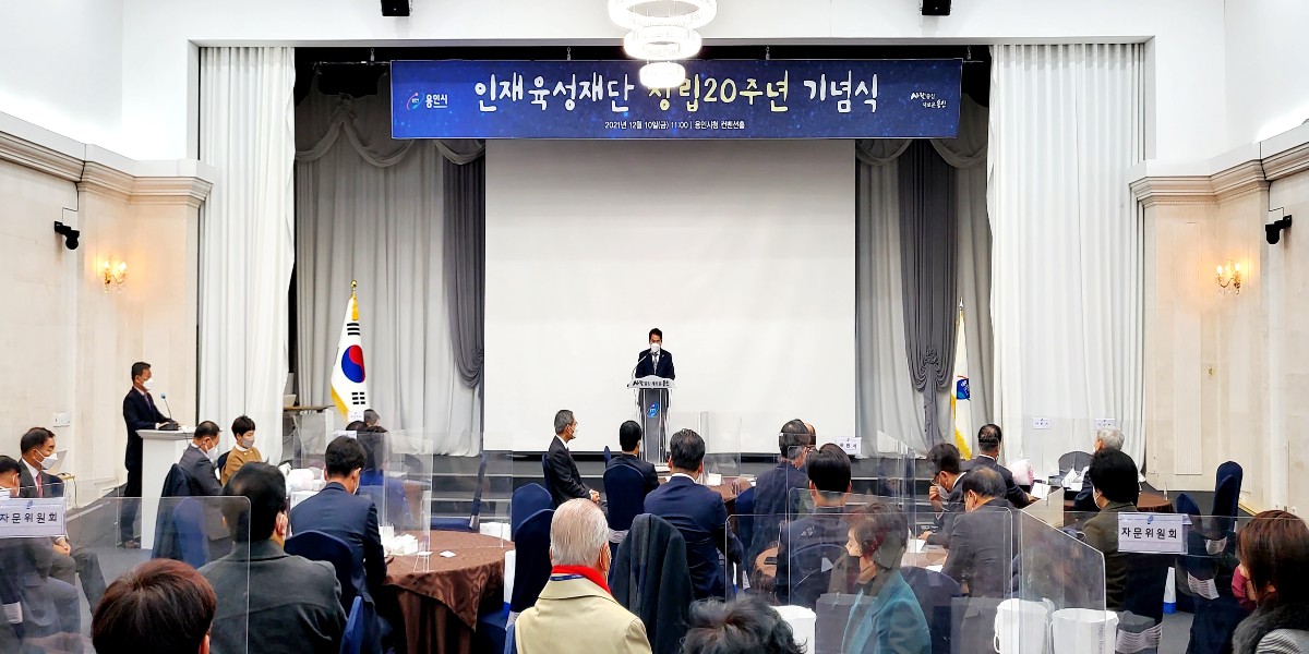 용인시 인재육성재단이 10일 용인시청 컨벤션홀에서, 재단 창립 20주년 기념식을 개최하고 18명에 표창·공로패 등을 전달했다.