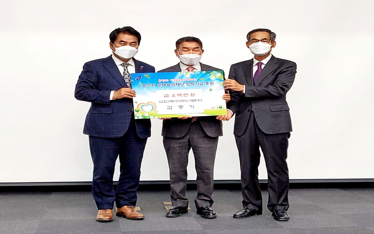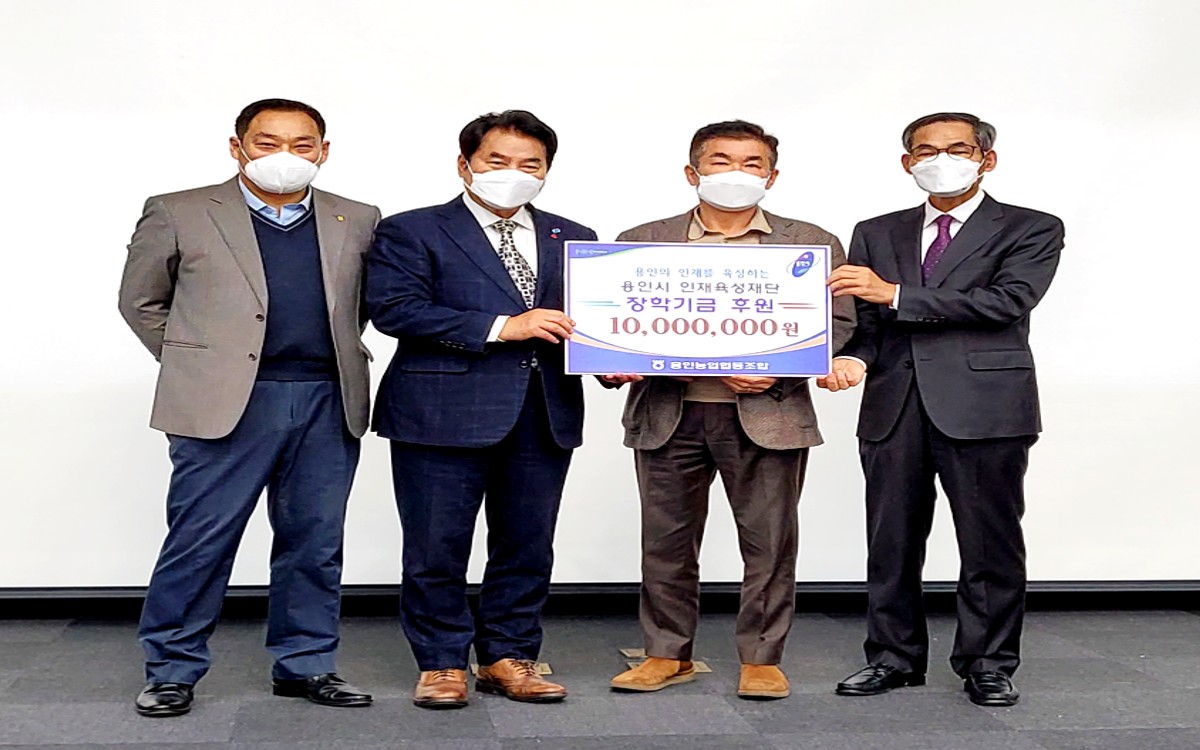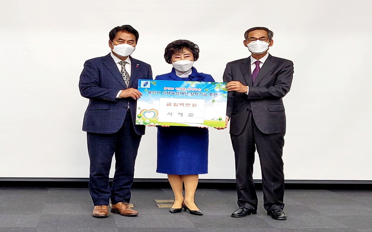 한편 이날 재단은 용인시건축사회·공사감리위원회(600만원), 이의도 농협중앙회 용인시지부장(600만원), 김상용 용인농협 조합장(1000만원)등으로 부터 장학기금 3600만원을 전달받았다.