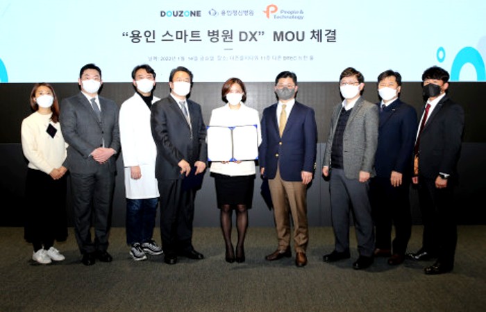 2022년 1월 17일 의료법인 용인병원유지재단(용인정신병원, 이사장 이효진)은 ‘용인 스마트병원 디지털 전환(DX) 모델의 국내외 확산’을 위해 더존비즈온(대표 김용우), 피플앤드테크놀러지(공동대표 홍성표, 임진순)와 업무협약(MOU)을 체결했다고 17일 밝혔다.