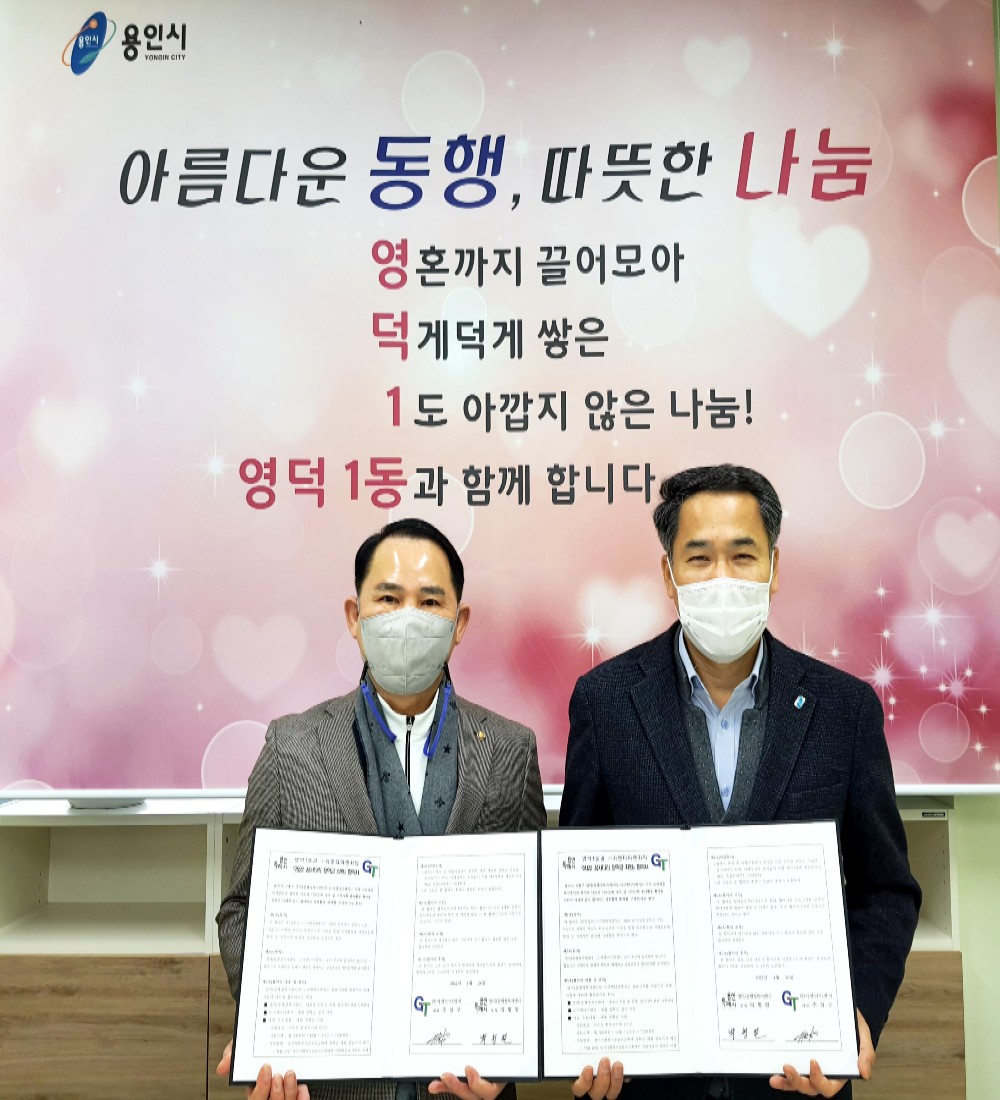 용인시 기흥구 영덕1동은 ㈜지엔티이엔지(대표 추상구)와, 향후 1년간 관내 저소득 한부모 가정 자녀를 위한 장학금 지원 협약을 체결했다고 26일 밝혔다.
