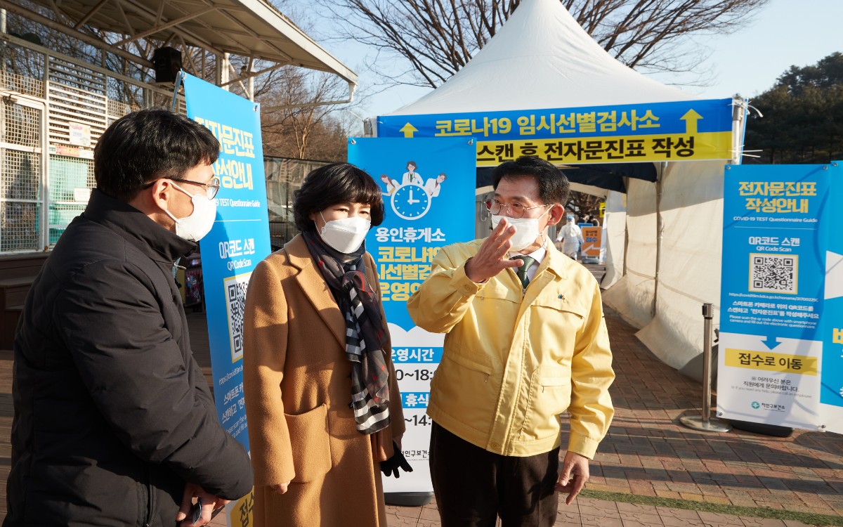용인시의회 김기준 의장은 설 연휴를 앞둔 28일, 영동고속도로 인천방향 용인휴게소에 마련된 임시선별검사소를 찾아 의료진과 관계자를 격려했다.