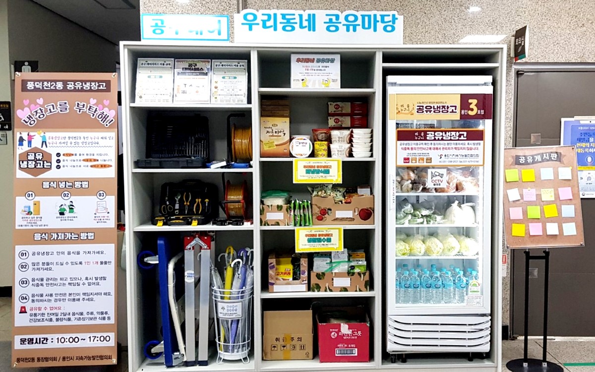 용인시 수지구 풍덕천2동은 4일, 주민 누구나 먹거리, 생필품을 나누고, 우산 및 생활 공구를 대여할 수 있는 ’우리동네 공유마당‘을 개장했다.