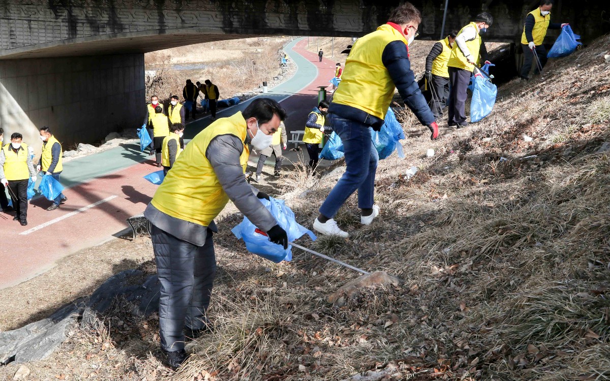 백군기 용인시장도 현장을 방문해 환경정화에 참여한 봉사자들을 격려하고 일손을 보탰다.