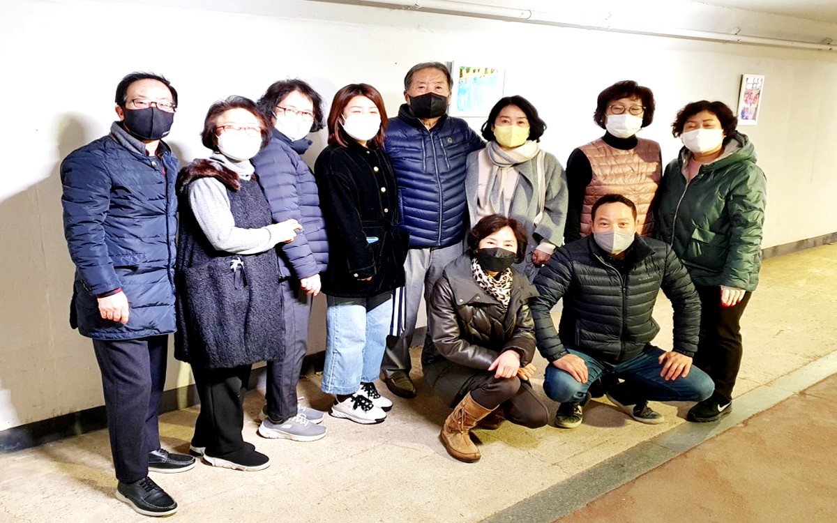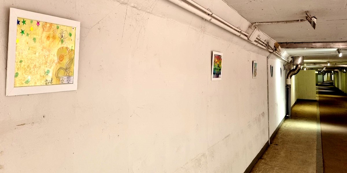 140m 지하도를 따라 설치된 44점의 작품은, 시립 신봉어린이집의 4~5세반 어린이들이 '아이들이 본 코로나 세상'을 주제로 그린 그림이다.