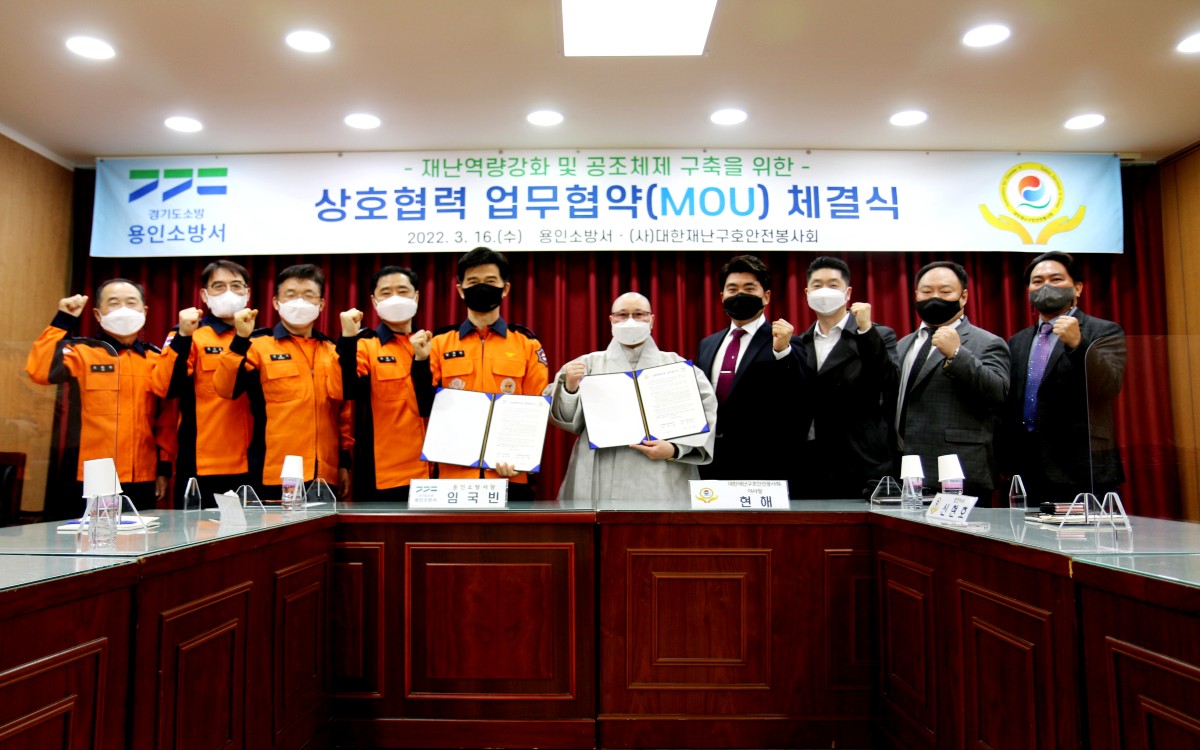 용인소방서(서장 임국빈)는 16일 대한재난구호안전봉사회(이사장 현해)와 상호업무협약을 체결했다고 밝혔다.