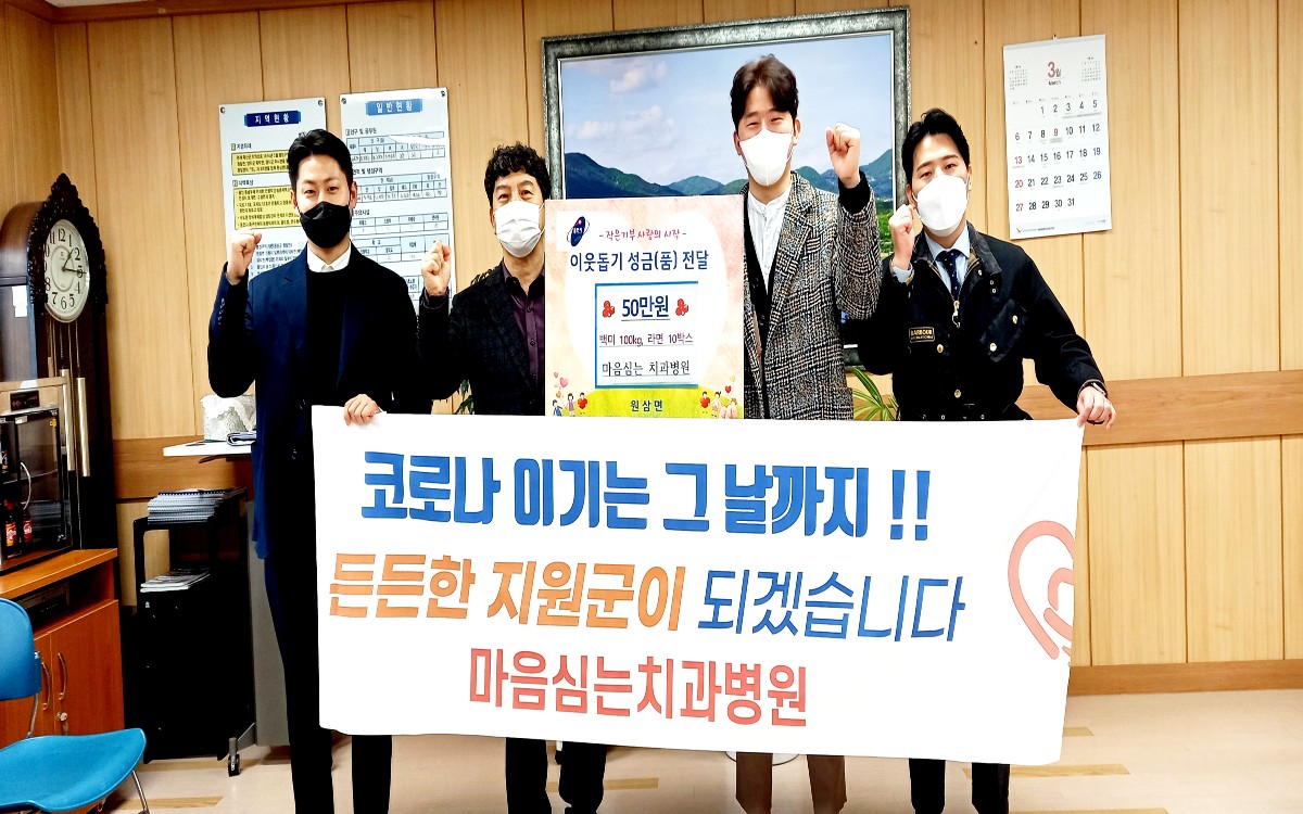 면 관계자는 “따뜻한 나눔을 실천해 주신 마음심는 치과병원에 감사드린다”며 “면에서도 복지사각지대에 있는 이웃을 적극 발굴하고, 도움을 드릴 수 있도록 지속적으로 노력하겠다”고 말했다.