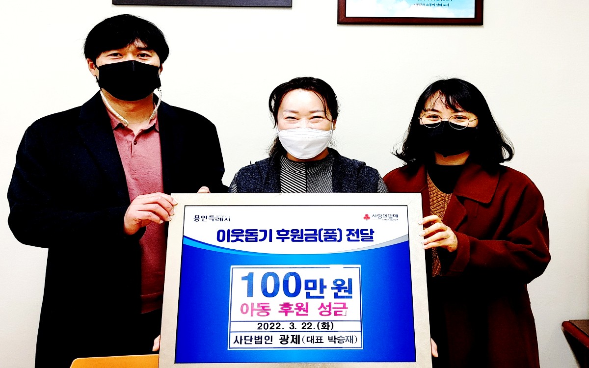 사단법인 광제, 처인구에 이웃돕기성금 100만원 기탁