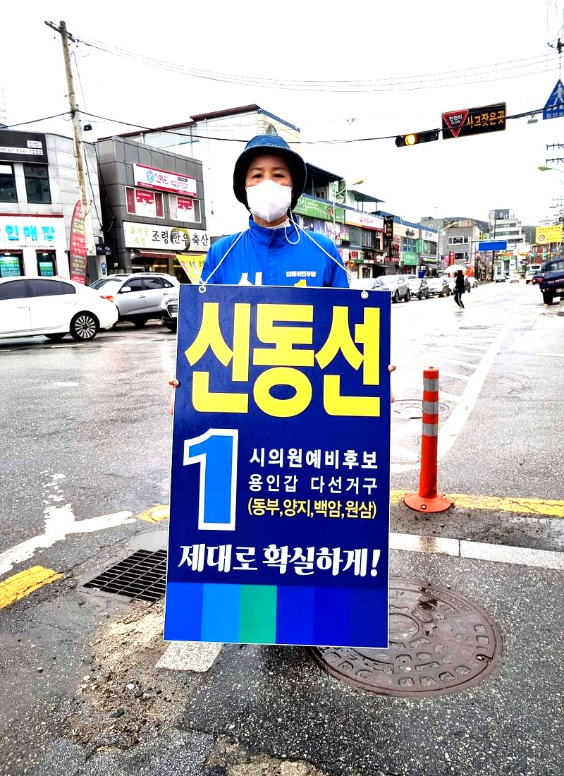 13일, 용인시 처인구 양지면 양지사거리 시민들께 인사하고있는 신동선 민주당 용인시의원 예비후보