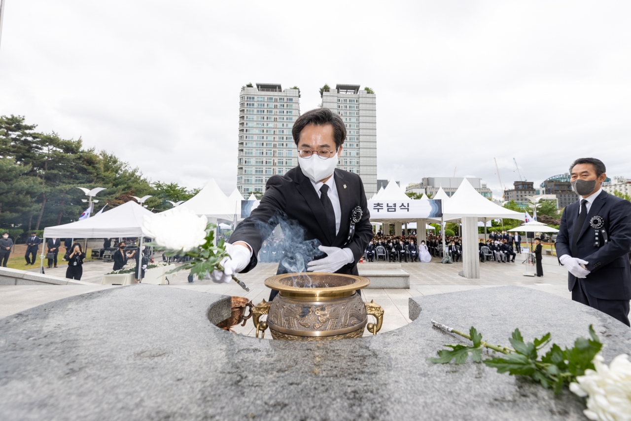 김동연 경기도지사 당선인은 6월6일 현충일에 국가를 위해 공헌하고 희생한 순국선열과 호국영령의 명복을 빌고, 그 위훈을 기려 도민의 애국정신을 고취하기 위한 현충일 핼사에 참석 헌화 하고 분향했다.