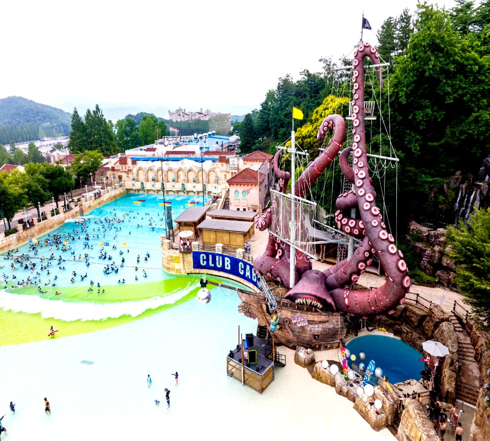 ▲현재 캐리비안 베이는 야외 파도풀에 새롭게 조성된 압도적 규모의 자이언트 크라켄을 중심으로 DJ 풀파티, 버스킹, 서커스 등 여름축제 '메가 웨이브 페스티벌'이 열리고 있어 여름 무더위를 시원하게 날려 버릴 수 있다.