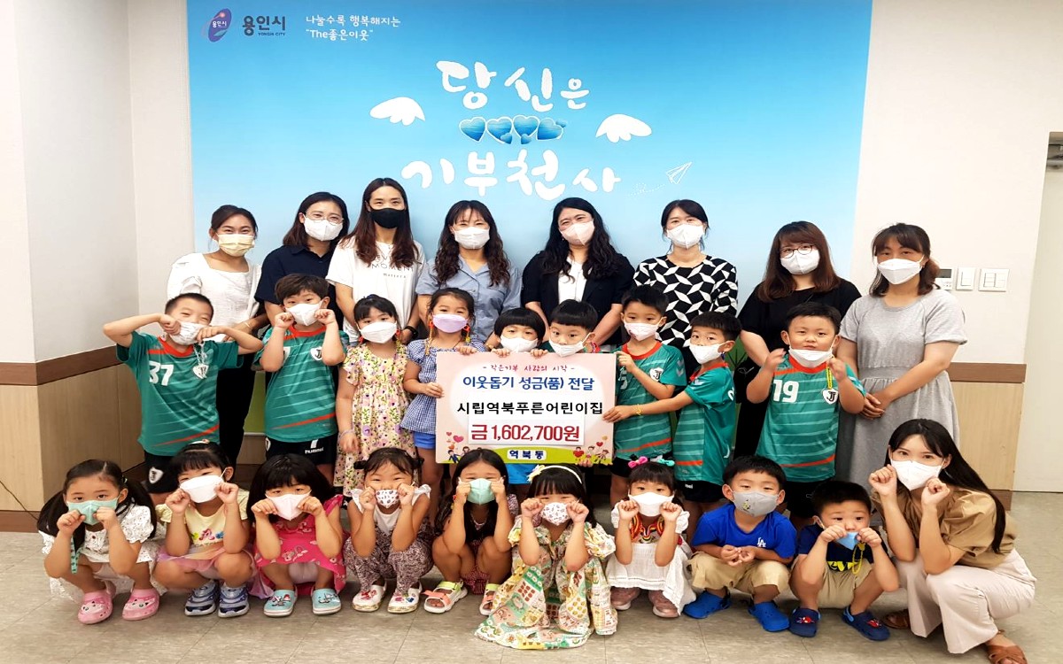 용인시 처인구 역북동은, 시립역북푸른어린이집(원장 김여진) 어린이들과 교사들이 직접 찾아와 성금 160만2700원을 기탁했다고 22일 밝혔다.