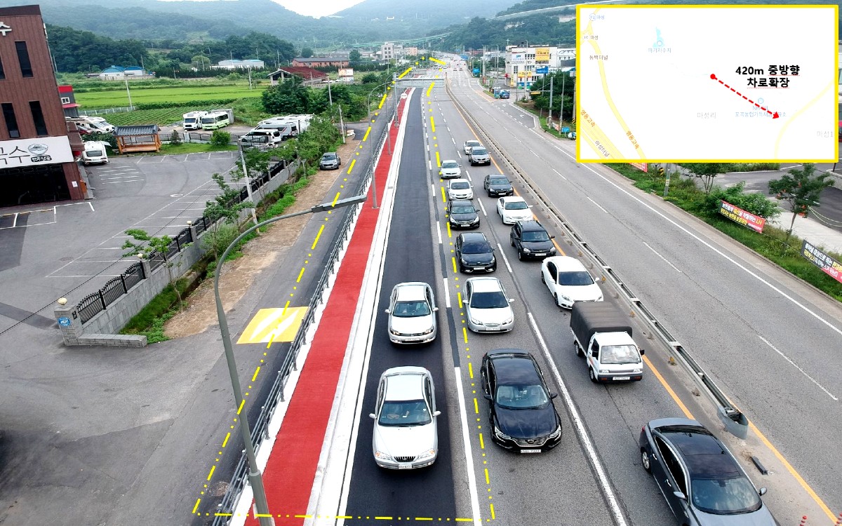 상습 정체구간이었던 마성교차로 일원의 통행량이, 차로 확장 이후 크게 증가한 것으로 나타났다.