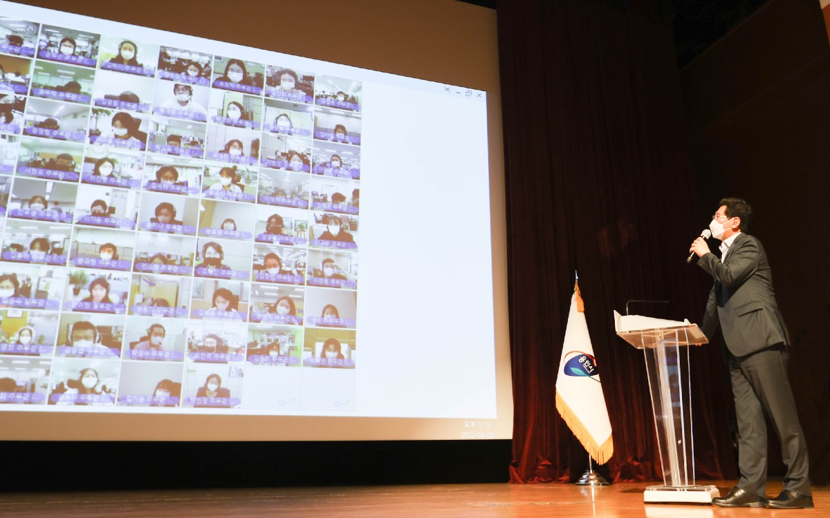 이 시장은 직원들과 소통하기 위해 지난 2일 영상회의 시스템으로, 용인시에서 근무하고 있는 7급 이하의 공직자 70여 명을 만났다.