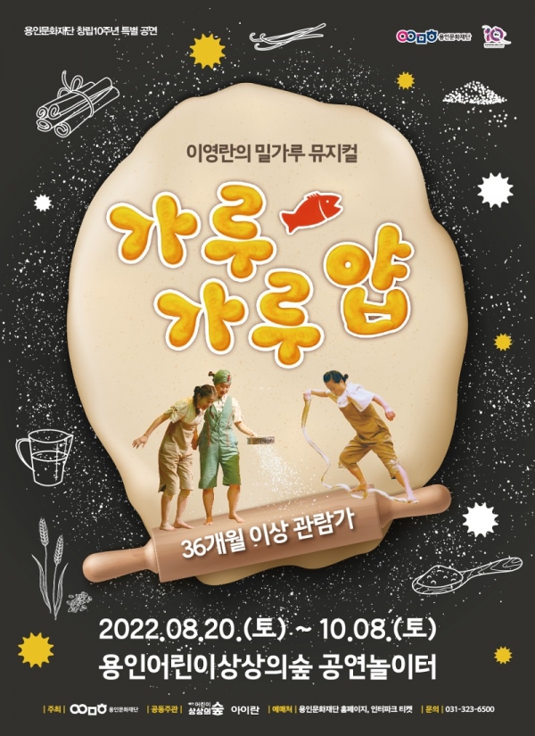 <가루가루 얍!>공연은 극 중 주인공 '가루'가 밀가루를 활용해 반죽을 만들고, 만들어진 반죽들이 다양한 장난감이 되어가는 과정을 이야기 형식으로 선보이며, 공연 후 관람객들이 직접 반죽 만들기 체험에 참여하여 색다른 재미와 건강한 자극을 줄 것으로 기대된다.