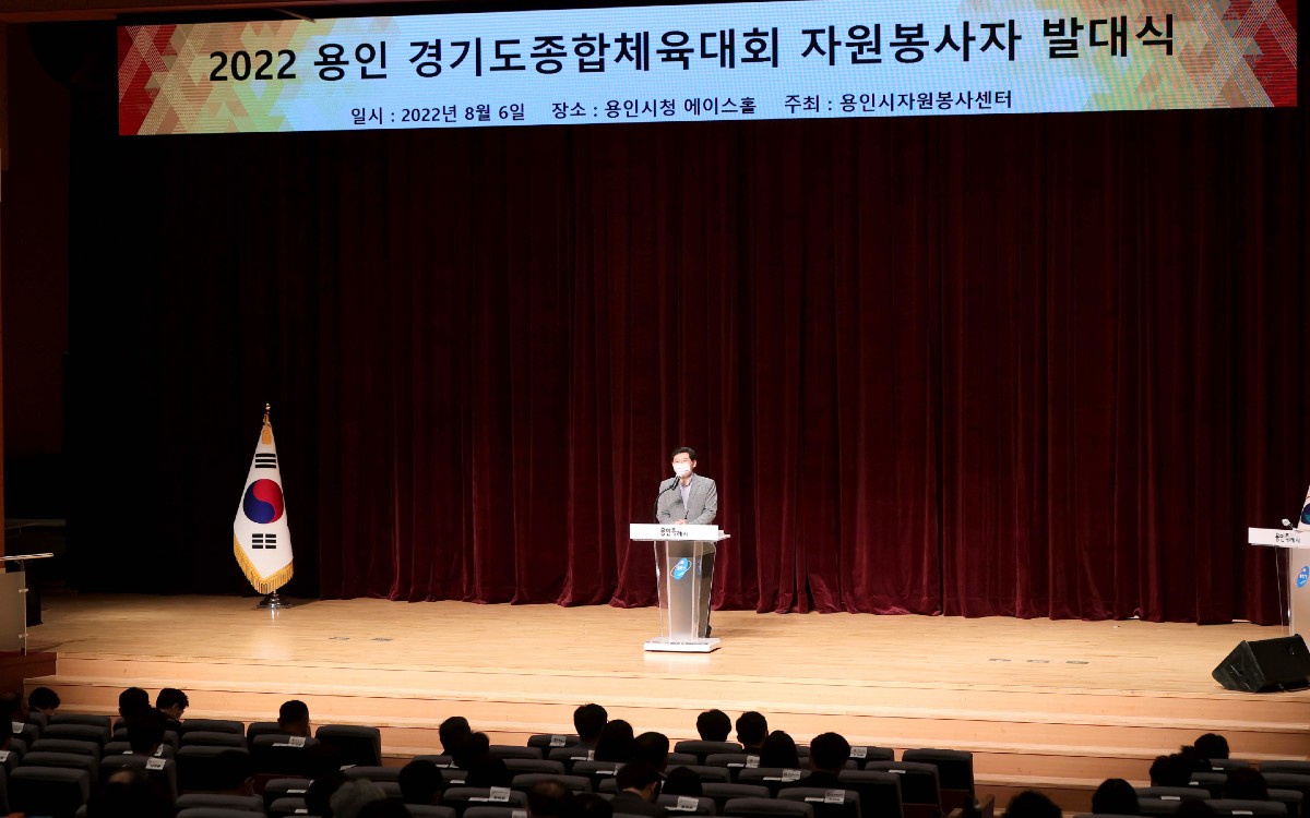 이상일 용인특례시장은 지난 6일 시청 에이스홀에서 진행된, 2022 경기도종합체육대회 자원봉사자 발대식에서 자원봉사자들을 격려하고, 성공적인 대회 진행을 위해 최선을 다해줄 것을 당부했다.