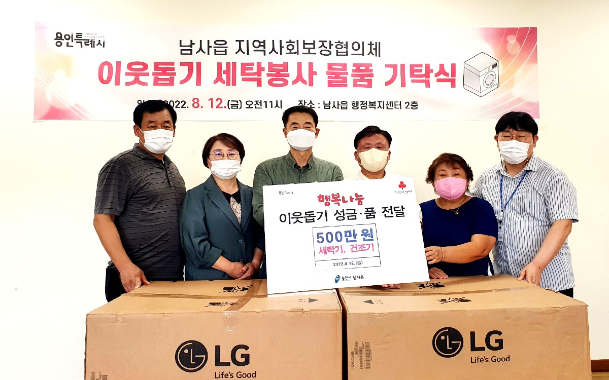 기탁된 물품은 남사읍 지역사회복지협의체의 특화사업인 ‘행복한 세탁소’에 쓰일 예정이다. 행복한 세탁소는 저소득 홀로 어르신과 장애인에게, 정기적인 세탁서비스를 제공하는 사업이다.