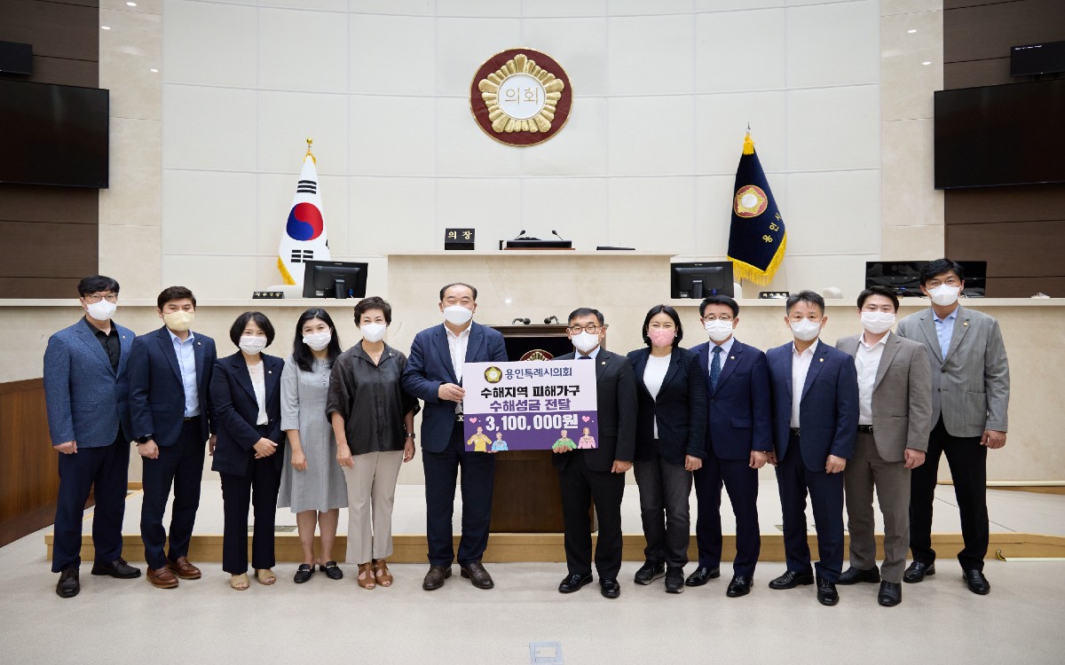 이번 성금 전달은 사회복지공동모금회에 전액 지정 기탁해, 용인시 관내에 수해 피해를 입은 저소득층의 가구에 현금으로 지원할 예정이다.