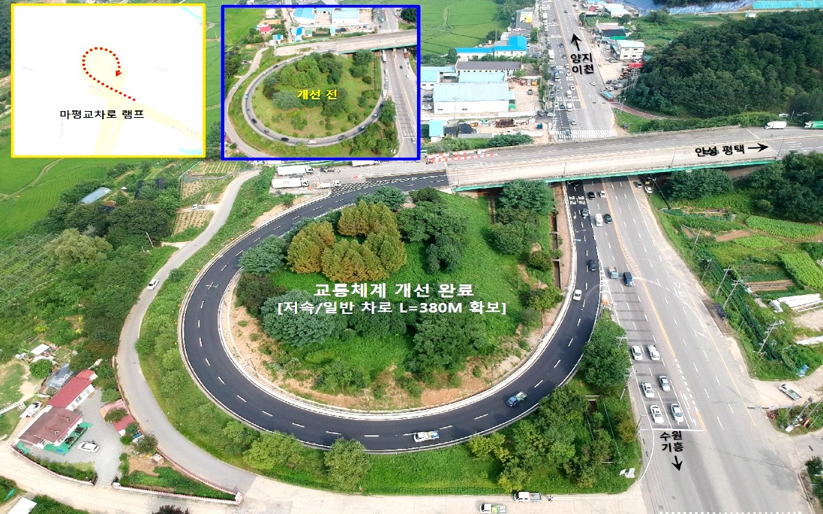 해당 구간은 국도42호선 양지·이천 방향에서 안성·평택 방향의 국도45호로 진입하려는 대형 물류 차량이 많아 상습 지·정체가 심각했다.