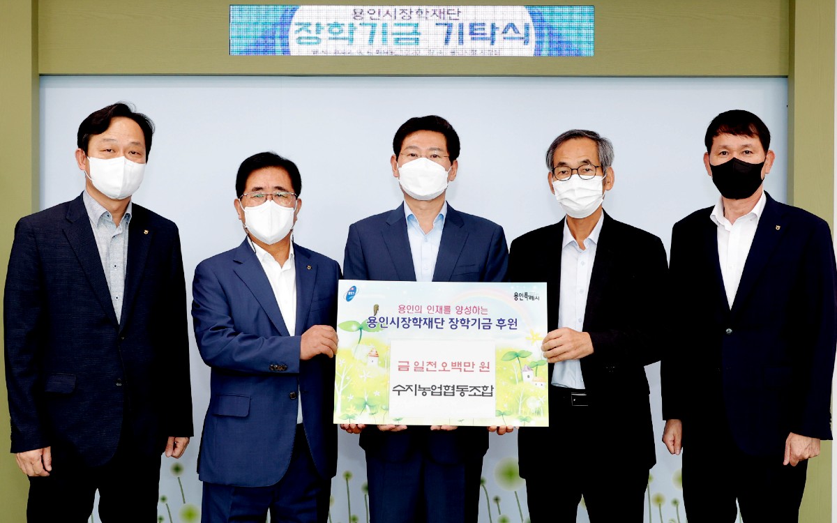 이날 기탁식엔 용인시장학재단 명예 이사장인 이상일 용인특례시장과 홍 조합장, 김춘식 용인시장학재단 이사장 등 4명이 참석했다.