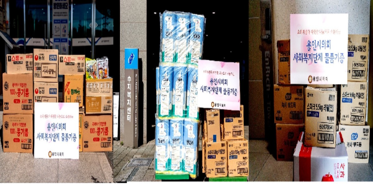 한편, 용인특례시의회는 매년 추석과 연말 폐회식 후 사회복지시설을 방문해, 필요한 물품을 전달하고 어려운 이웃과 함께하는 나눔을 실천하고 있다.