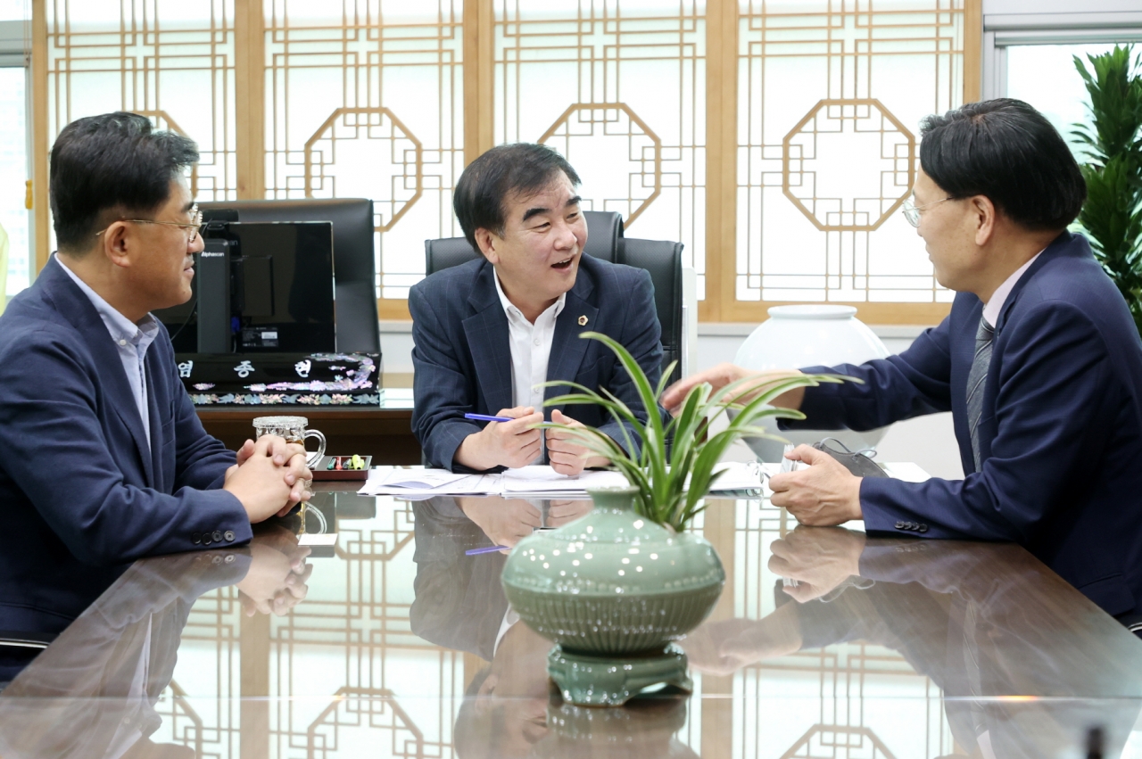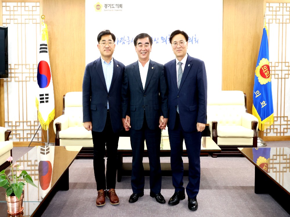 주요 교통정책 과제에 대해 논의 염종현 경기도의회 의장(더민주, 부천1)은 13일, 의장 집무실에서 이회수 경기교통공사 사장 직무대행을 접견하고, ‘교통약자 이동편의 제고’, ‘대중교통 이용 활성화 시책’ 등 주요 교통정책 과제에 대해 논의했다. 이날 접견에는 이기형 의원(더민주, 김포4)이 배석했다. 저작권자 © 용인종합뉴스 무단전재 및 재배포 금지 천홍석 기자 다른기사 보기
