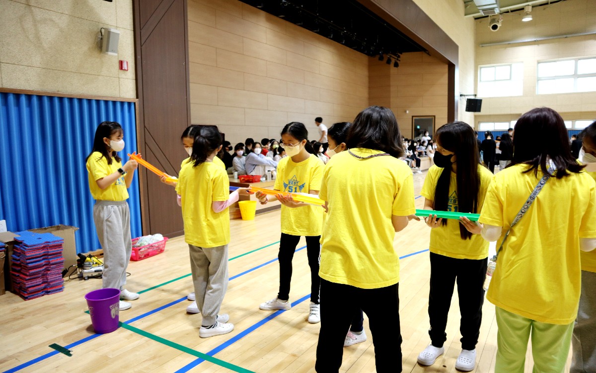 5, 6학년은 돼지 피구, 파이프 올인원 게임, 계주 달리기, 마커판 뒤집기, 물풍선 받기, 장막 줄다리기, 긴 줄넘기를 했다.