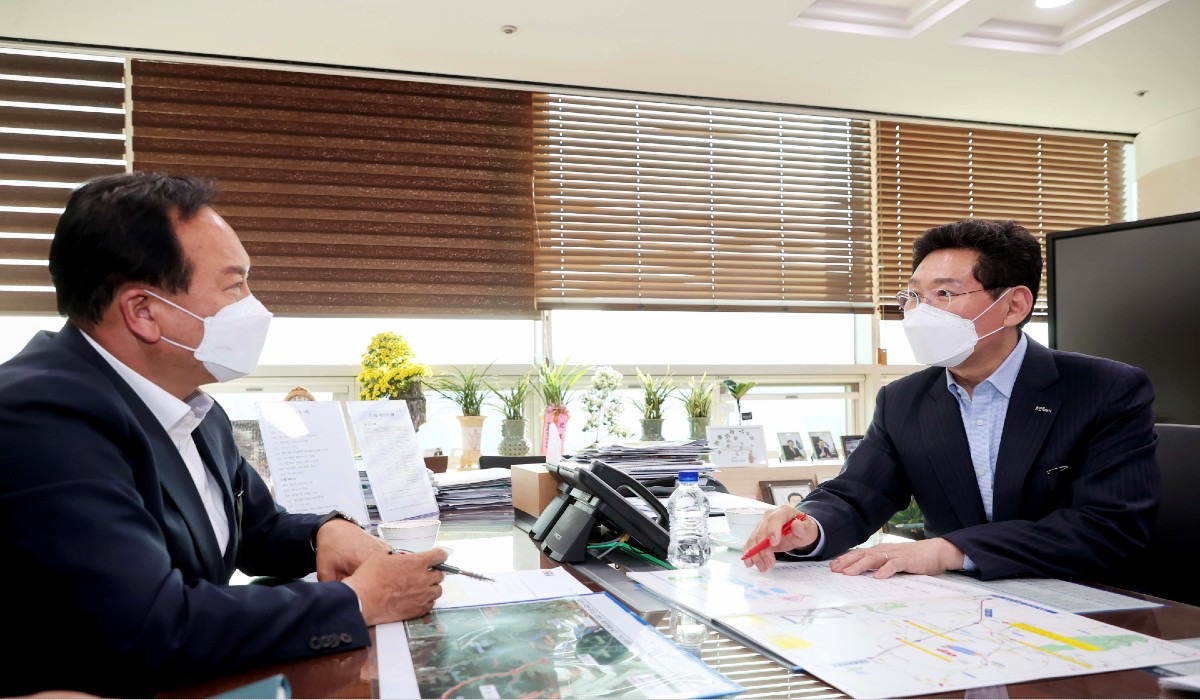 이상일 용인특례시장과 이권재 오산시장은 1일 오후, 용인시청 시장실에서 만나, 국지도 82호선과 국지도 23호선 해당 구간을 2차선에서 4차선으로 확장하는 데 주력하기로 했다.