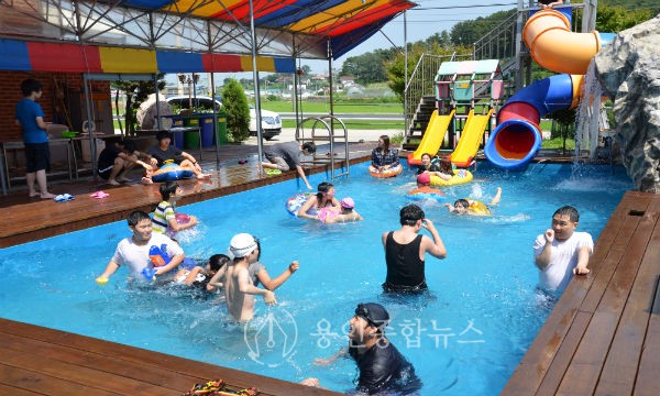 갯벌체험이 끝난 후 찌는듯한 무더위를 잠시라도 식힐려고, 식당 앞마당에 위치한 미니수영장에서 학생들은 모두 함께 한마음으로 즐거운 한때를 보내기도하였다.