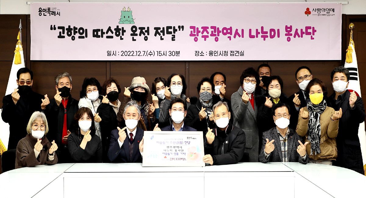 김경미 회장은 “조금 늦었지만 이상일 용인특례시장님의 취임을 진심으로 축하드리고,우리 광주시민들의 따뜻한 마음도 함께 전하기 위해 용인시를 찾았다”며 “광주에서 재배한 농산물들로 정성껏 담근 김치가, 용인의 어려운 이웃들에게 힘이 됐으면 좋겠다”고 말했다.