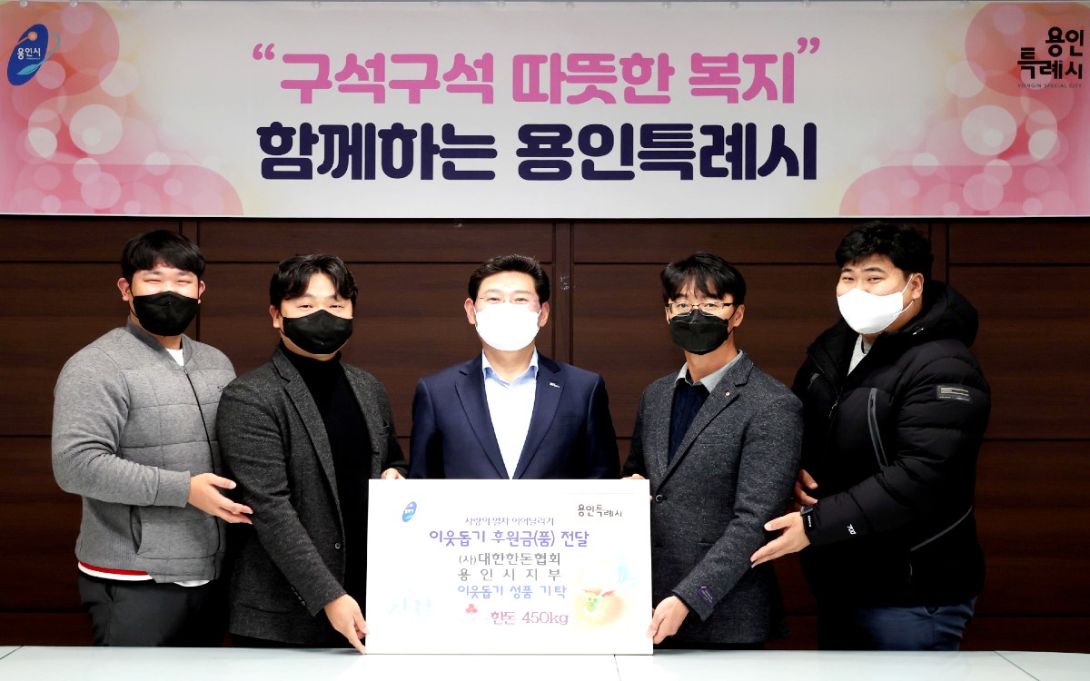 대한한돈협회 용인시지부는 관내 축산 경영인 70여명이 한돈 홍보를 위해 구성한 단체로 수 년째 관내 어려운 이웃을 위해 돼지고기를 기탁을 이어오고 있다. 지난해에는 원삼면과 백암면에 각각 한돈 150kg과 125kg을 기탁했다.