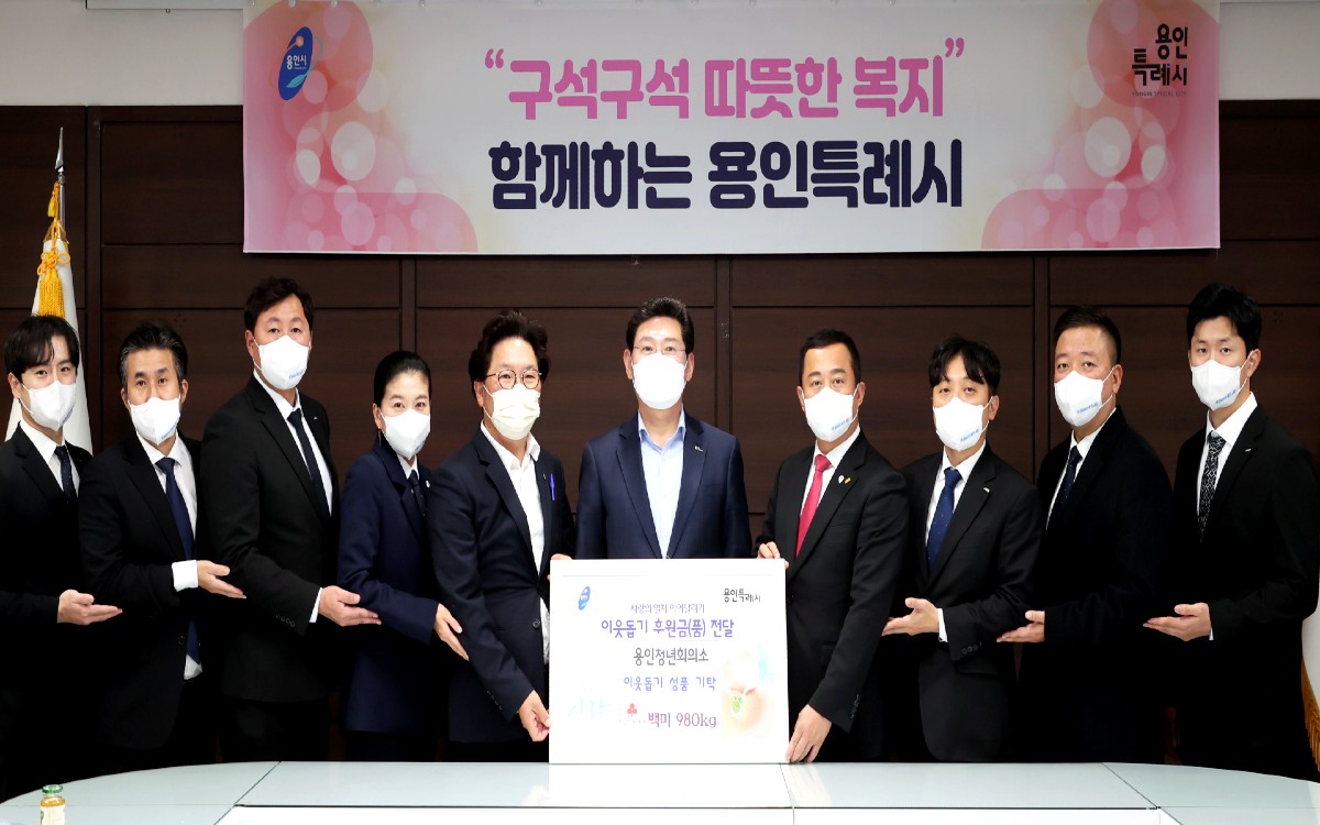 용인청년회의소 김정구 회장과 관계자 10명도 시장실을 방문해 회원들이 직접 농사지은 쌀 10kg짜리 98포를 기탁했다.