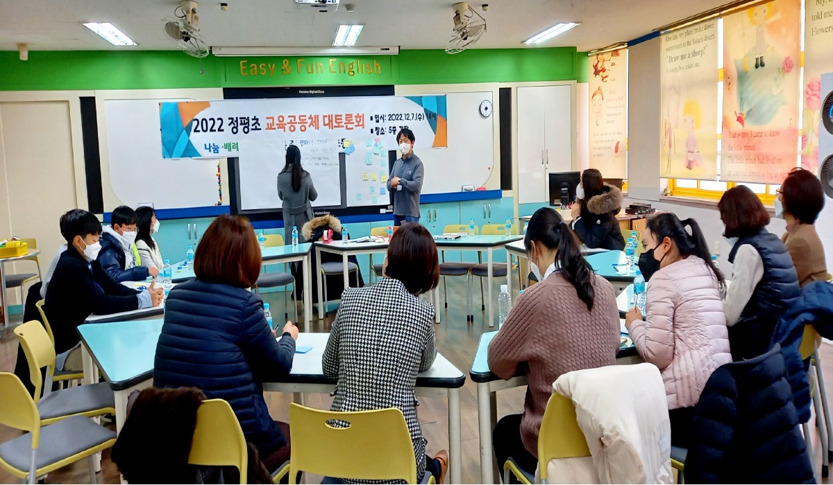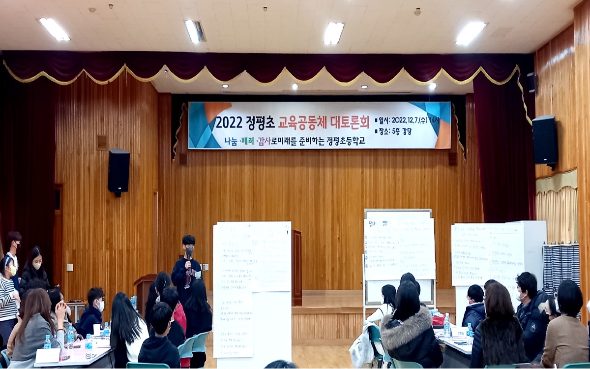 정평초등학교(교장 남영숙)는 2022년 12월 7일, 2023학년도 학교교육과정에 반영하기 위해‘평화로운 정평초 만들기’를 주제로 대토론회를 진행했다.